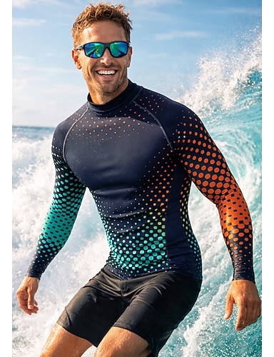 Herren Anti UV Shirt T-Shirt zum Schwimmen Geometrisch Farbverlauf Punkt UPF50+ UV Schutz Schnelltrocknend Langarm Bademode Schutz gegen Hautausschlag Surfen Kanufahren Strand Sommer