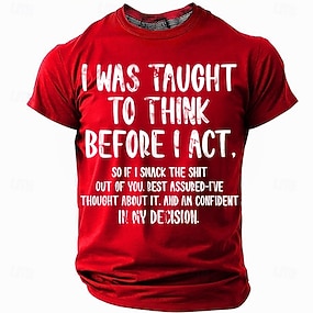 Lustiges T-Shirt für Männer: „Mir wurde beigebracht, vor dem Handeln nachzudenken.“ Humorvolles Shirt mit dem Spruch „Selbstbewusste Entscheidung“. Sommer- und Frühlingsbekleidung in den Größen S, M,