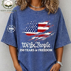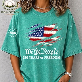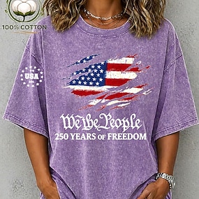 Unabhängigkeitstag der Vereinigten Staaten Damen 100% Baumwolle T-Shirt Shirt Vintage Gewaschen Tops Druck Grafik Flagge Stylisch Basic Klassisch Kurzarm Crew Neck Rundhalsausschnitt Reguläre Tops