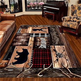 Teppich im amerikanischen Landhausstil, rustikales Vintage-Design mit Bärenmuster, strapazierfähig und fleckenabweisend, für Wohnzimmer, Schlafzimmer, Hütten- und Heimdekoration