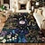 Botanischer Teppich mit Pilz- und Wildblumenmotiven, floralem und mondbeschienenem Gartendesign, Laub- und Nachtblütenmuster, elegante und langlebige Wohndekoration von episodischen Zeichnungen