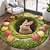 Runder Teppich mit 3D-Optik, 2D-Flachdruck: Niedliches Häschen in einem Loch, umgeben von Tulpen – Frühlingsgarten-Perspektive