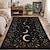 Mondphasen- und botanischer Teppich mit floralem Blatt- und Himmelsgartenmotiv, mystisches Nachthimmel-Thema, weiche und strapazierfähige Schlafzimmer- oder Wohnzimmerdekoration von episodischen