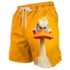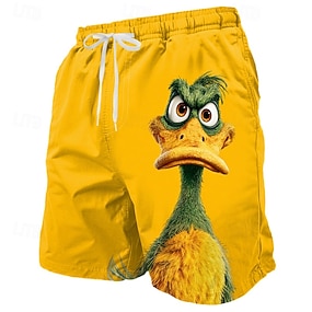 Herren Lustig Ente Comic-Tiere Badehosen Badeanzüge Badeshorts Boardshorts Mittlere Taille Hawaiianisch Strandurlaub Seitentaschen Netzfutter Elastischer Kordelzug in der Taille Designer Bekleidung