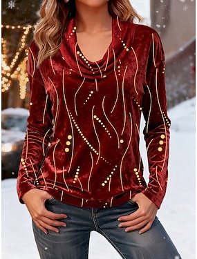 Weihnachten Damen Tunika T-Shirt Druck Grafik Tupfen Schneeflocke Elegant Vintage Mode Langarm Rollkragen Normale Oberteile Täglich Ausgehen Wochenende Blau Gelb Rote Grün Winter