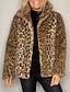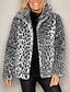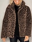 Damen Wintermantel Jacke Warm Bequem Tasche Lässig Leopard Urlaub Alltagskleidung Ausgehen Wochenende Kurz Umlegekragen Normale Passform Langarm Oberbekleidung Rosa Blau Braun Herbst Winter