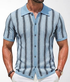 Herren Hemd Textur Freizeithemd Knopfhemd Jacquard-Hemd Blau Kaki Kaffee Kurzarm Vertikale Streifen Hemdkragen Lässig Täglich Fronttasche Bekleidung Elegant Mode Lässig
