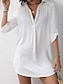 Damen Minikleid Weißes Kleid Strandkleid Überwurf Elegant Mode Klassisch Täglich Outdoor Strand Normale Passform Einfach Langarm V Ausschnitt Weiß Sommer Frühling