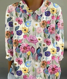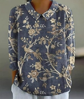 Maxikleid Damen Leinenähnlich Atmungsaktiv Leicht Sommerkleid Shift-Kleid A-Linie Kleid Urlaub Lässig Boho Strand Ausgehen Floral 3/4 Länge Ärmel Rundhals Blau Weiß Grün Sommer Frühling