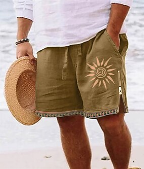 Herren Shorts Kurze Hosen Leinenshorts Kurze Hosen Strandshorts Kurze Hosen Caprihose Kordelzug Elastische Taille Glatt Komfort Atmungsaktiv Wadenlänge Outdoor Täglich Festtage Urlaub Brautkleider