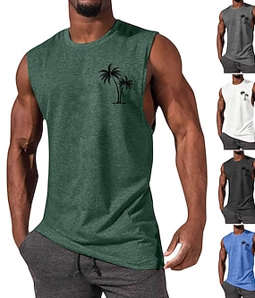Herren Grafik Palme Weste Ärmelloses T-Shirt für Herren Kappenärmel T-Shirt 3D-Druck Rundhalsausschnitt Hemd Mode Designer Muskel Täglich Sport Fitnessstudio Schwarz Weiß Blau Frühling & Sommer