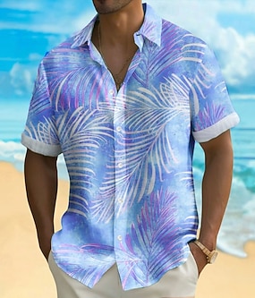 Herren Kokospalme Tropische Pflanzen Hemd Sommer Hawaiihemd Alohahemd Kurzarm Mode Streetwear Designer Outdoor Urlaub Straße Sommer Frühling Stehkragen Druck Blau Purpur Grün Khaki Grau
