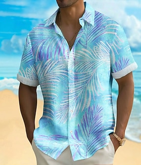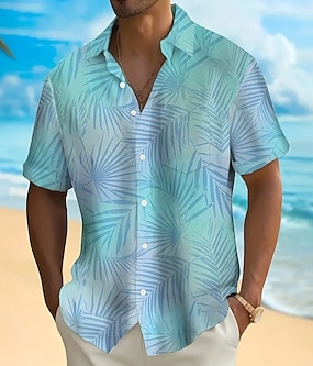 Herren Palmblatt Tropische Pflanzen Sommer Hawaiihemd Knopfhemd Kurzarm Hawaiianisch Resort Urlaub Ferien Strandbekleidung Sommer Frühling Umlegekragen Hemden mit Kragen Eine Tasche vorne Blau