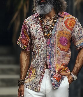Herren Blumendruck Indianer Boho Hemd Sommer Hawaiihemd Knopfhemd Kurzarm Hawaiianisch Urlaub Ferien Strandbekleidung Sommer Frühling Umlegekragen 3D-Druck Hemden mit Kragen Aprikose