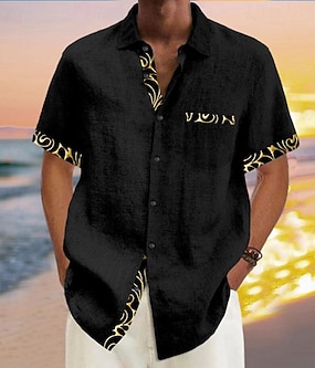 Herren Hemd leinenhemd Sommerhemd Strandhemd Sommer Hawaiihemd Einfarbig Urlaub Straße Blau Grau Kurzarm Umschlagkragen Frühling & Sommer Bekleidung Patchwork