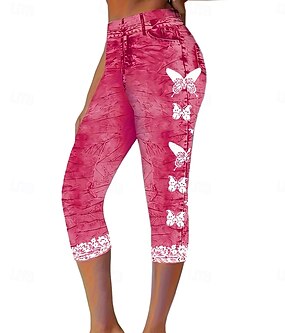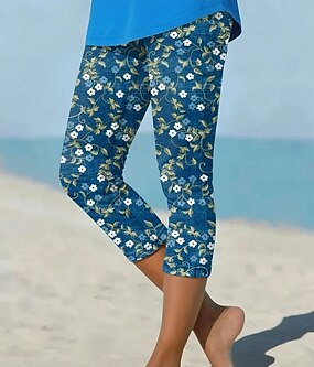 Damen Leggings Capri Hosen 3D Druck Hohe Elastizität Urlaub Vintage Mode Knöchellang Hohe Taille Blumengrafik Druck Atmungsaktiv Weich Dehnbar Formal Urlaub Büro Marineblau Sommer Frühling