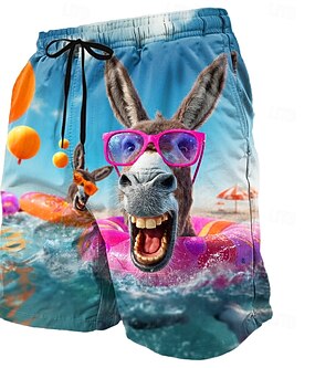 Herren Tiermotiv Nilpferd Verschluss Badehosen Badeshorts Boardshorts Mittlere Taille Lustig Hawaiianisch Strandurlaub Seitentaschen Netzfutter Elastischer Kordelzug in der Taille Designer Bekleidung