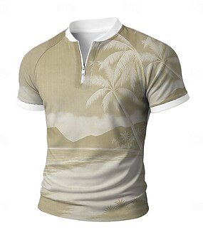 Herren Palme Reißverschluss-Polo Kurzarm Stehkragen Urlaub Freizeit Athleisure Hawaiianisch Alltagstauglich Reißverschluss 3D-Druck Sommer Rubinrot Hellgrün Braun