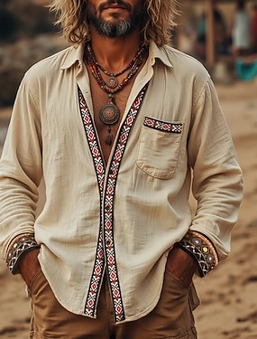 Herren Leinenhosen Hose Sommerhose Baggy-Hosen Strandhose Kordelzug Elastischer Bund Druck Ethnisch Komfort Atmungsaktiv Volle Länge Täglich Outdoor Strand Mode Böhmische Blau Schwarz Unelastisch