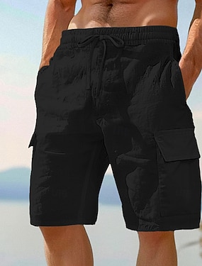 Herren Leinenhosen Caprihose Sommerhose Kordelzug Elastischer Bund Mehrere Taschen Einfach Komfort Atmungsaktiv Wadenlang Lässig Täglich Outdoor Urlaub Mode Blau Schwarz Unelastisch