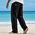 Herren Leinenhosen Hose Sommerhose Strandhose Kordelzug Seitenknopf Gerader Schnitt Einfach Komfort Atmungsaktiv Knöchellang Lässig Täglich Ferien Mode Klassicher Stil Schwarz Weiß