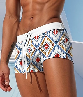 Herren Geometrisches Muster Badehosen Badeshorts Boardshorts Mittlere Taille Mode Designer Surfen Ferien Strand Kordelzug Tasche Elastischer Bund Designer Bekleidung
