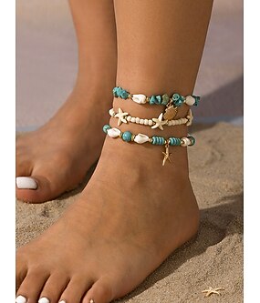 Boho-Seestern-Fußkettchen für Damen – handgefertigtes Muschel-Fußkettchen mit Perlen und türkisfarbenen Anhängern, Sommer-Strandschmuck für den Urlaub und lässige Outfits