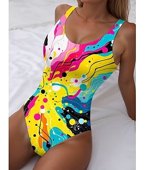Woman's Einteiliges Badeanzug Schlank machend Strandbekleidung Sommer Grafik Geometrisch U-Ausschnitt Ärmellos Badeanzüge
