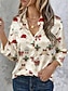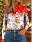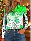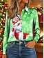 Weihnachten Damen Hemd Grafik Weihnachtsmann Elegant Vintage Stilvoll Langarm Hemdkragen Normale Oberteile Arbeit Täglich Ferien Schwarz Grün Beige Herbst Winter