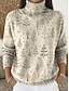 Damen Pullover Vintage Lässig Weich Grafik Weihnachtsbaum Gerippt Rollkragen Gestrickt Druck Langarm Normale Oberteile Stricken Outdoor Täglich Wochenende Hellgrün Blau Herbst Winter