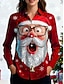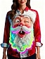 Weihnachten Damen Hemd Grafik Weihnachtsmann Elegant Vintage Stilvoll Langarm Hemdkragen Normale Oberteile Arbeit Täglich Ferien Weiß Wein Rote Schwarz Weiß Herbst Winter