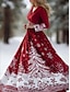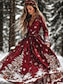 Damen Midikleid A Linie Kleid Figurbetontes Kleid Urlaub Lässig Boho Party Täglich Ausgehen Normale Passform Grafik Schneeflocke Langarm Rundhalsausschnitt Rote Sommer Frühling Herbst Winter