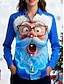 Weihnachten Damen Hemd Grafik Weihnachtsmann Elegant Vintage Tropisch Langarm Hemdkragen Normale Oberteile Arbeit Täglich Ferien Blau Grün Grau Herbst Winter