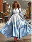 Weihnachten Damen Maxikleid Faltenkleid Party Lässig Boho Täglich Date Ausgehen Normale Passform Schneeflocke Langarm V Ausschnitt Rote Blau Herbst Winter