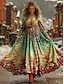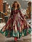 Weihnachten Damen Midikleid A Linie Kleid Urlaub Lässig Täglich Normale Passform Blumen Grafik Langarm V Ausschnitt Gelb Rote Blau Grün Frühling Herbst Winter