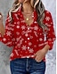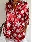 Weihnachten Damen Hemd Grafik Buchstabe Schneeflocke Vintage Täglich Stilvoll Langarm Hemdkragen Normale Oberteile Arbeit Täglich Knöpfe Druck Rote Herbst Winter