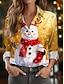 Weihnachten Damen Hemd Grafik Schneemann Elegant Vintage Stilvoll Langarm Hemdkragen Normale Oberteile Arbeit Täglich Ferien Gelb Rote Blau Herbst Winter