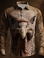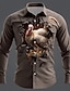 Erntedank Herren Optische Täuschung Türkei Hemd Knopfhemd Langarm Vintage-Retro Ferien Frühling Herbst Umlegekragen 3D-Druck Hemden mit Kragen Dunkelbraun Braun