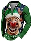 Weihnachten Herren Cartoon Jeder Polo Langarm Umlegekragen Modern Lässig Alltagstauglich Festival Reißverschluss 3D-Druck Frühling Herbst Winter Schwarz Rote Grün