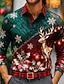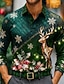 Weihnachten Herren Tiermotiv Rentier lustige weihnachten Hemd Knopfhemd Langarm Lustig Weihnachtsgeschenke Ferien Frühling Herbst Umlegekragen 3D-Druck Hemden mit Kragen Blau Dunkelgrün Grün