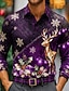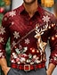 Weihnachten Herren Tiermotiv Rentier lustige weihnachten Hemd Knopfhemd Langarm Lustig Weihnachtsgeschenke Ferien Frühling Herbst Umlegekragen 3D-Druck Hemden mit Kragen Rote Blau Purpur