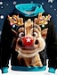 Weihnachten Herren Hirsch Sweatshirts Pullover Sweatshirt Langarm Sweatshirt Rundhalsausschnitt Niedlich Lässig 3D-Druck Party Ferien Rundhalsausschnitt 3D-Druck Winter Frühling & Herbst