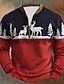 Weihnachten Herren Cartoon Hirsch Langarm T-Shirt Druck Stehkragen Hemd Mode Outdoor Lässig Täglich Ferien Blau Wasserblau Schwarz Frühling Herbst Winter Bekleidung Normal S M L XL XXL XXXL