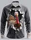 Weihnachtshemden, Herrenhemd, Buchstabe, Weihnachtsmann, Grafikdrucke, Turndown, Schwarz, 3D-Druck, Weihnachten, Straße, lange Ärmel, Button-Down-Druck, Kleidung, Mode, Designer, lässig