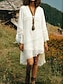 Damen Normal Minikleid Weißes Kleid Boho Chic Kleider Boho-Kleid Weißes Boho-Kleid Urlaub Mode Sexy Urlaub Athleisure Ferien Normale Passform Einfarbig Dreiviertelarm V Ausschnitt Stürzen Schwarz