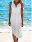 Damen Blau Weiß Braun Sommer Frühling Minikleid Kunstbaumwollleinen Weißes Kleid Freizeitkleid Basic Modern Täglich Wochenende Lässiger Schnitt Einfach V Ausschnitt