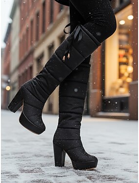 Wasserdichte, gesteppte Kniestiefel für Damen – warme, isolierte Winterstiefel mit Absatz, stilvolle Wintermode für Schnee, Outdoor-Aktivitäten und Urlaubsausflüge