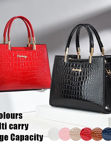 Schwarze Damenhandtasche aus Leder mit Krokodilmuster | elegante Tragetasche mit Tragegriffen und Umhängegurt | perfekt fürs Büro, Business und formelle Anlässe