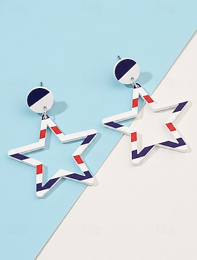 250. Jahrestag der Vereinigten Staaten Frauen Drop-Ohrringe Hängende Ohrringe Acryl Aktive Vintage täglicher Stern Pentagramm