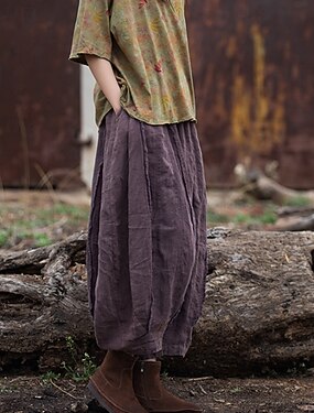 Damen Hose aus Baumwollleinen Hose Sommerhose Baggy-Hosen Urlaub Vintage Mode Volle Länge Mittlere Taille Einfarbig Elastischer Bund Schnelltrocknend Atmungsaktivität Leicht Mikroelastisch Outdoor